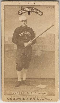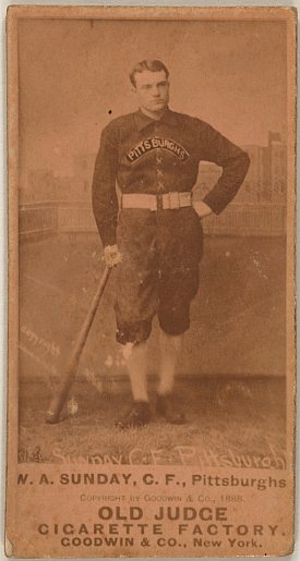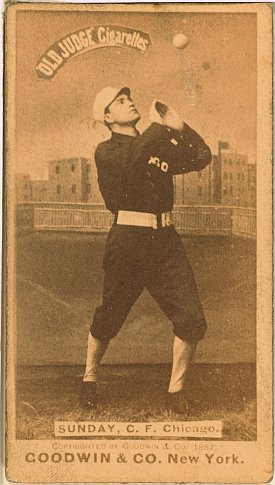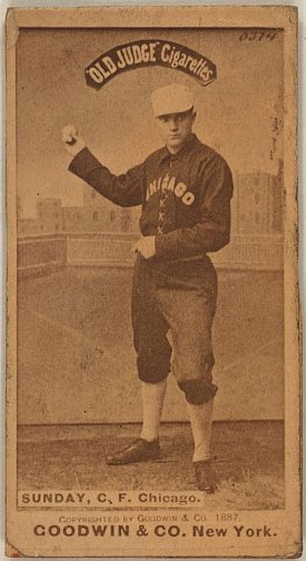 Click Here For Billy's Baseball Stats! Click Here For A History Of Chicago Baseball Billy Sunday Baseball Card Checklist: Old Judge Cigarettes (Please keep in mind that Billy Sunday wasn't a Christian yet. Cigarette smoking is a disgusting addiction of the heathen world). 446 1a - Bending Over - Ball In Hand