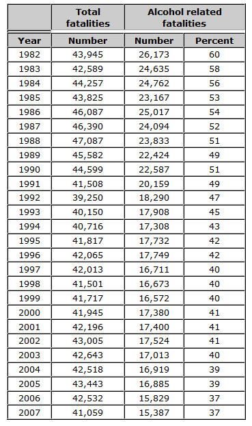 The following chart is FACT, not opinion. Despite all the political hype, warnings and disclaimers from the booze industry, alcohol related traffic fatalities had only reduced by 3 percent between 1997 and 2007. . .