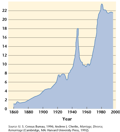 Granting women legal rights precipitated a fifty fold increase in the US divorce rate.
