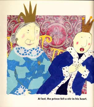 But then one princess brings her brother along. The book describes the prince's reaction to her brother in these the two pages below: "At last, the prince felt a stir in his heart. It was love at first sight." (As the princess, naturally, looks confused.)