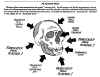 CRO-MAGNON MAN—(*#4/4 Cro-Magnon and Rhodesian Man*) In 1868 a cave was discovered at Les Eyzies, in the Dordogne area of France. In the local dialect, cro-magnon means "big hole." A number of skeletons have been found there, and have been hailed as the great "missing link" between man and ape.The Cro-Magnons were truly human, possibly of a noble bearing. Some were over six feet tall, with a cranial volume somewhat larger than that of men today. This means they had more brains than men have today. Not only did they have some excellent artists among them, but they also kept astronomy records. The Cro-Magnons were normal people, not monkeys, and they provide no evidence of a transition from ape to man..