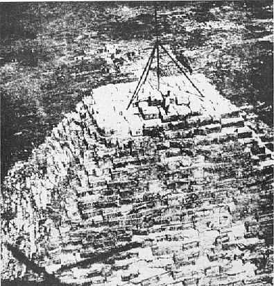 The only problem is that this would be a very large capstone. If you climbed to the top, you could walk around very freely on the pyramid as many have done. It is about 30 feet in each direction. Thus, this capstone would have been huge and weighed a tremendous amount. Also on the summit you would see something that looks like a mast or flagpole. Actually it was placed there by two astronomers in 1874 to show where the Pyramid's actual apex would have been if finished.
